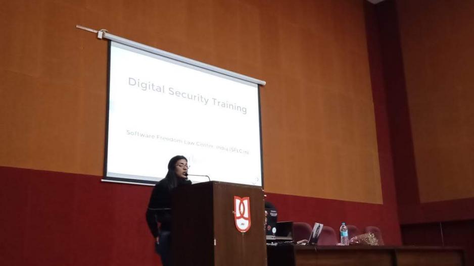 On 4th Feb, 2019 we conducted a Digital Security Training workshop at School of Computer and System Sciences, Jawaharlal Nehru University, New Delhi. It was a public training, most of the participants were students and Professors from the University. Dean of School of Computer and System Sciences also attended the first half of the workshop. The topics that were focused upon were: "What is privacy? "How do people perceive the term privacy in physical spaces?".